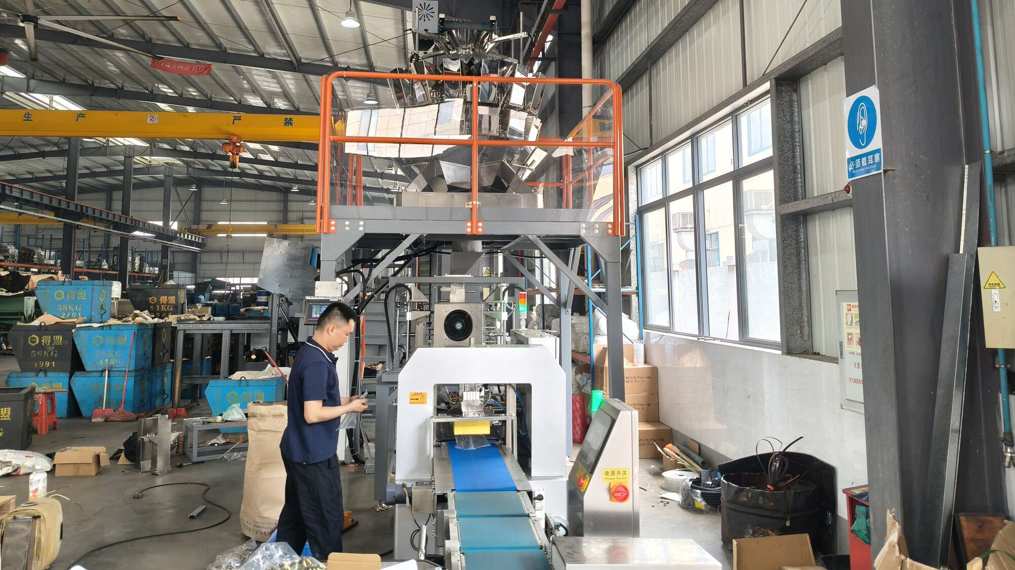 Weighing: Multi head weigher with collision-resistant and robust hoppers customized for hardware fasteners. Accurate weighing.